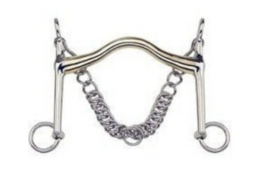 The thin mouth makes this weymouth bit ideal for horses with small mouths and large tongues. Stainless steel bit includes curb chain and hooks.