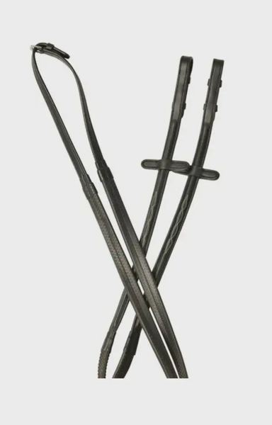 Equestro english reins in Italian smooth leather, coated with rubber, with stainless steel buckles.