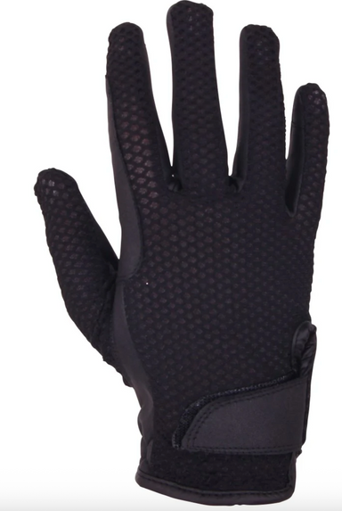 Suede grip palm to give a perfect grip on the reins.Featuring a lightweight and breathable air mesh backing.Added reinforcement around the rein fin...
